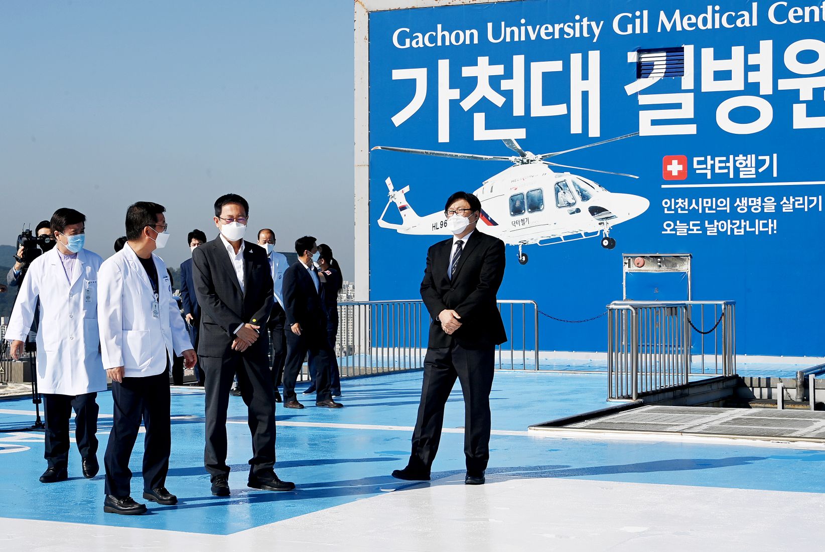 박남춘 인천시장은 응급의료 전용 닥터헬기 운항 10주년을 맞이해 가천대길병원 내 위치한 닥터헬기 운항통제실을 방문해 의료진과 관계자들을 격려했다.