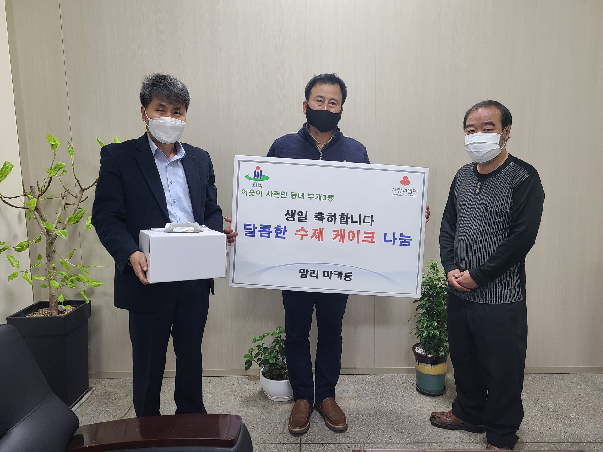 부개3동은 28일 지역 내에 위치한 디저트 전문점 ‘말리’로부터 수제 케이크를 기부 받았다.