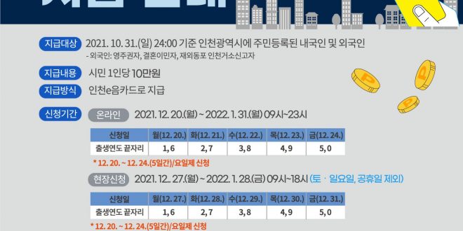 부평구 관계자는 “지원금 신청 초기에는 신청자가 몰려 대기시간이 길어지는 불편을 겪을 걸로 예상된다”며 “가능하면 온라인으로 신청하고, 불가피한 경우 시간적 여유를 두고 동 행정복지센터를 방문해 신청하길 바란다”고 말했다.