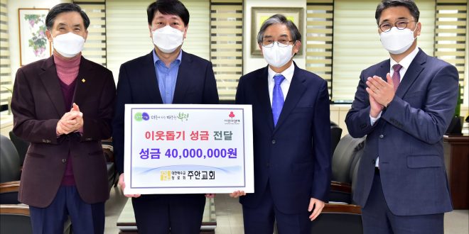 지난 28일 대한예수교장로회 주안교회가 부평구에 이웃돕기 성금 4천만원을 전달했다.