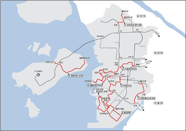 8개 노선 중 인천2호선 검단 연장, 부평연안부두선, 송도트램 등 3개 노선은 연내 예비타당성조사 신청을 위해 사전타당성조사 용역을 추진할 계획이다.