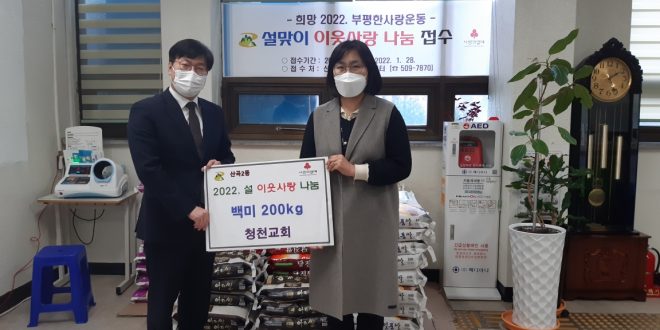 산곡2동은 지난 18일 지역에 위치한 청천교회로부터 설맞이 이웃사랑 백미 200kg을 기탁 받았다.
