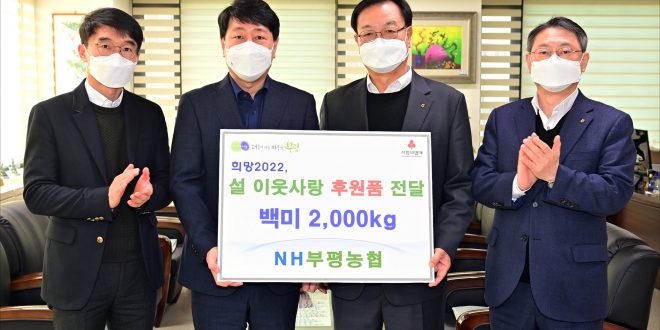 이상원 부평농협 조합장은 “코로나19로 힘든 시기를 보내는 우리 이웃들에게 작게나마 힘이 되는 선물이 되길 바란다”며 “앞으로도 지역사회와 더불어 성장하는 농협을 만들겠다”고 전했다.
