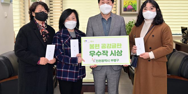 부평구는 지난 25일 2022년도 봄편 공감글판 최우수상에 남우숙 씨의 창작시를 선정하고 구청장실에서 시상식을 진행했다.