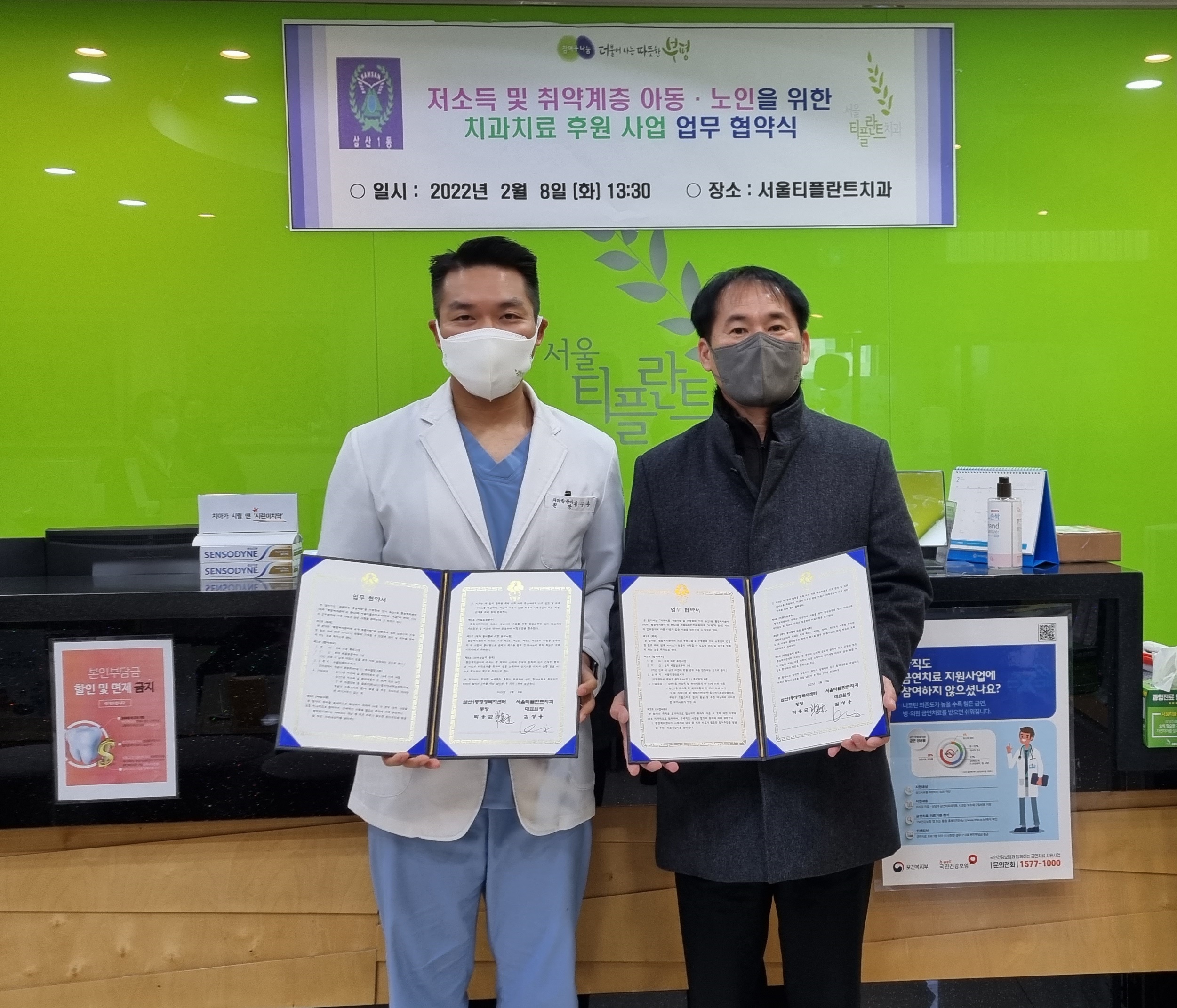 서울티플란트치과에서 실시한 이번 협약은 지역 내 저소득층 및 취약계층 아동과 노인을 대상으로 건강한 치아 유지와 삶의 질 향상을 지원하고, 사회공헌활동 확대 및 네트워크를 구축하기 위해 마련됐다.