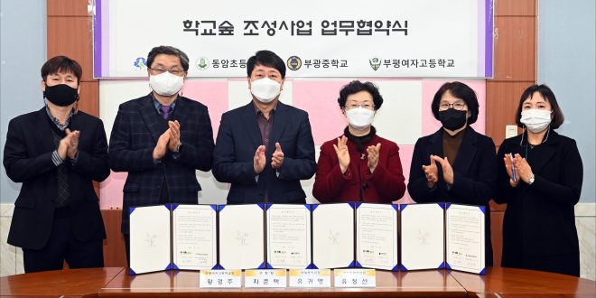 이번 협약은 ‘학교 숲’ 조성을 위해 구와 학교의 유기적인 협조체계를 구축하기 위한 것으로, 동암초등학교와 부광중학교, 부평여자고등학교가 함께했다.