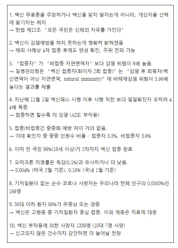 최춘식 국회의원이 백신패스를 전면 철폐해야 하는 10가지 이유를 발표했다.