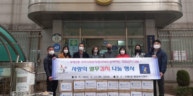 부평5동 지역사회보장협의체는 지난 17일 봄을 맞아 홀몸노인 등 지역 내 저소득 100가정에 열무김치를 지원했다.