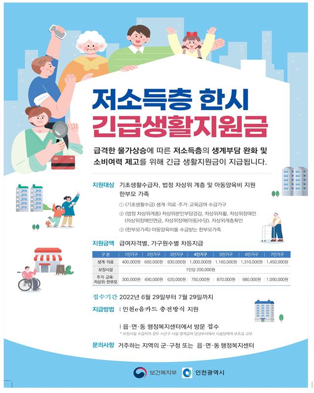 인천시는 6월 29일부터 한시 긴급생활지원금을 지급한다.