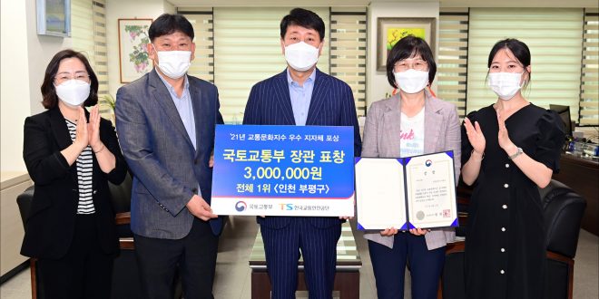 부평구는 지난 27일 한국교통안전공단에서 실시한 ‘2021년 교통문화지수 우수지자체 시상식’에서 국토교통부장관 기관 표창을 수상했다.