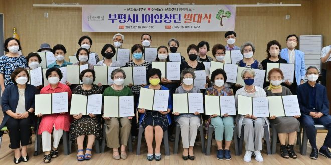 7일 부평구 문화도시센터는 산곡노인문화센터 대강당에서 ‘부평시니어합창단 발대식’을 진행했다.