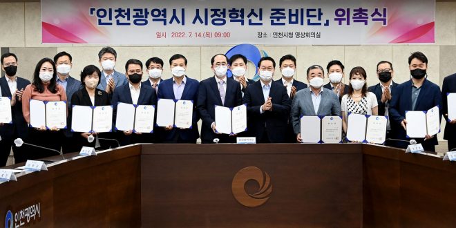 14일 인천시는 시청 영상회의실에서 민선8기 시정혁신 정책 자문 역할을 하게 될 ‘인천시 시정혁신 준비단’을 위촉하고, 제1차 회의를 개최했다고 밝혔다.