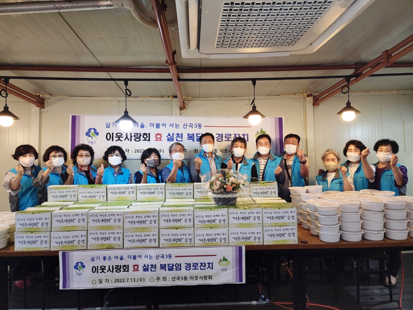 산곡3동 이웃사랑회는 지난 13일 지역 내 노인 100여 명을 대상으로 ‘복날 맞이 산곡3동 이웃사랑회 효실천 복달임 행사’를 진행했다.