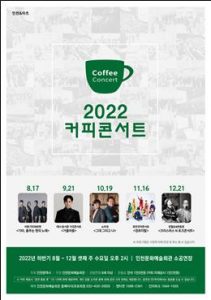 인천문화예술회관에서 펼치는 <커피콘서트>가 2022년 8월부터 12월까지 총 5회 차의 라인업을 공개했다.