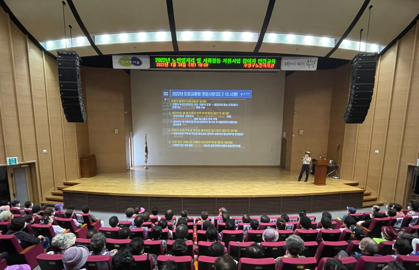 27일 부평구노인복지관은 7월 26일, 29일 양일에 걸쳐 노인 일자리 사업 공익형 사업단 8개, 시장형 사업단 1개 등 총 9개 사업단 978명 대상으로 ‘일자리 참여자 안전교육’을 시행하고 있다고 밝혔다.