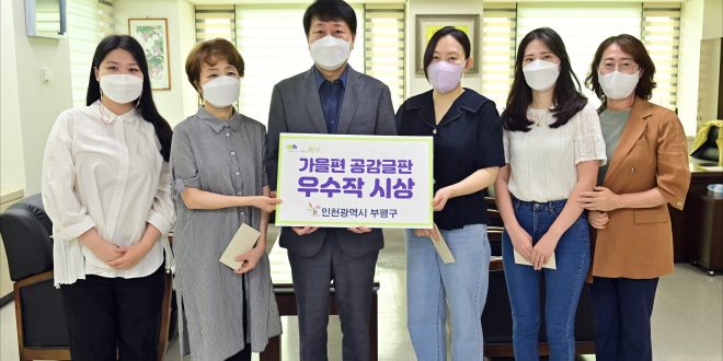 부평구는 지난 27일 2022년도 가을편 공감글판 최우수상에 임선희 씨의 창작 문안을 선정하고 구청장 집무실에서 시상식을 진행했다.
