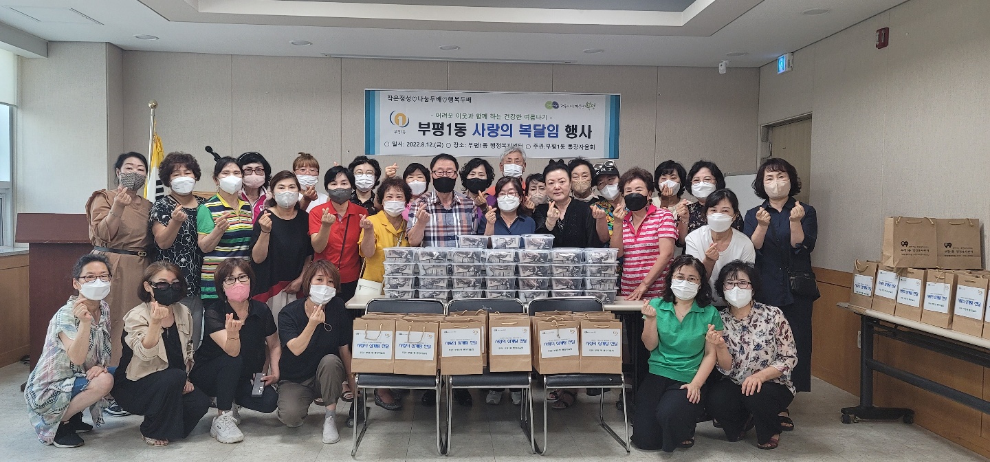 부평1동 통장자율회는 12일 말복을 맞아 지역 내 홀몸노인 및 저소득 가정 60곳에 삼계탕을 전달하는 ‘사랑의 복달임 행사’를 진행했다.