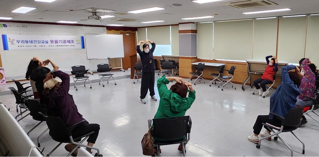웃음기공체조교실은 건강하고 활기찬 일상 생활을 위해 지역 내 60세 이상 주민 20명을 대상으로 오는 12월1일까지 매주 목요일 무료로 진행한다.