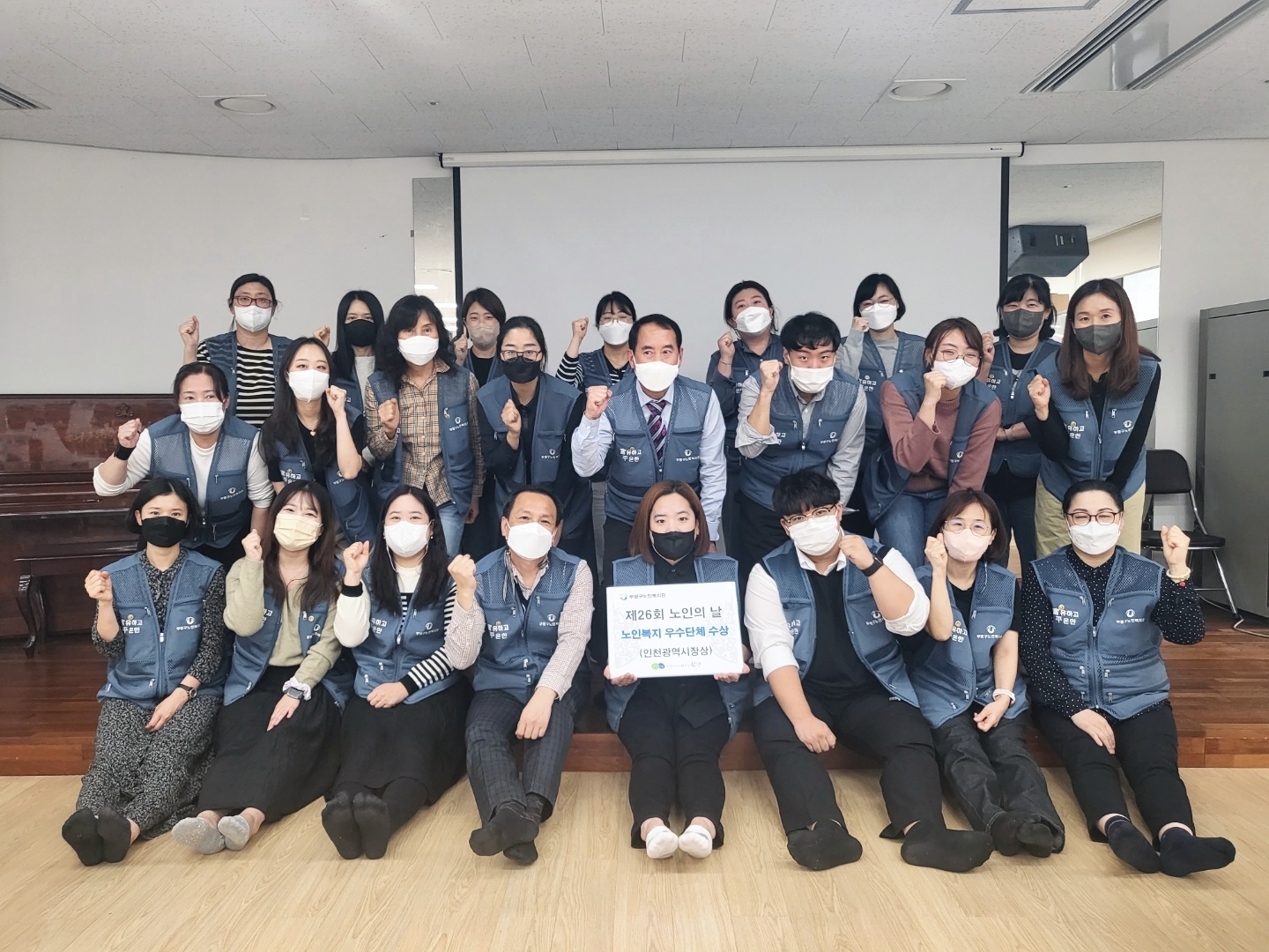 수상 공적은 △평생학습 103개 강좌 개설 △여가문화 31개 프로그램 진행 △노인일자리 10개 사업단 운영 △노인맞춤 및 특화서비스 제공 △결식우려 어르신 무료급식 지원 △어르신 건강증진사업 실시 △주민이 참여하는 다양한 행사 추진 △사랑의 온정 나눔 운동 전개 등 이다.