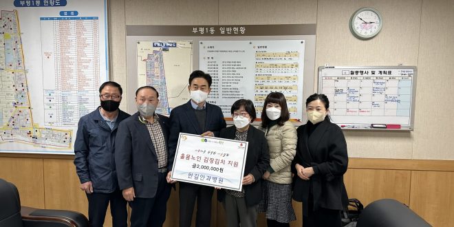 최근 3일 부평1동은 부평 한길안과로부터 지역 내 어려운 이웃을 돕기 위한 지역복지 성금 200만 원을 전달받았다.