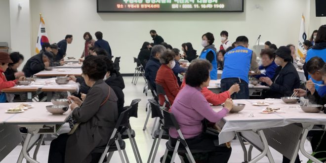 최근 10일 부평4동 통장자율회는 행정복지센터 다목적실에서 홀몸노인 떡만둣국 나눔 행사를 진행했다.