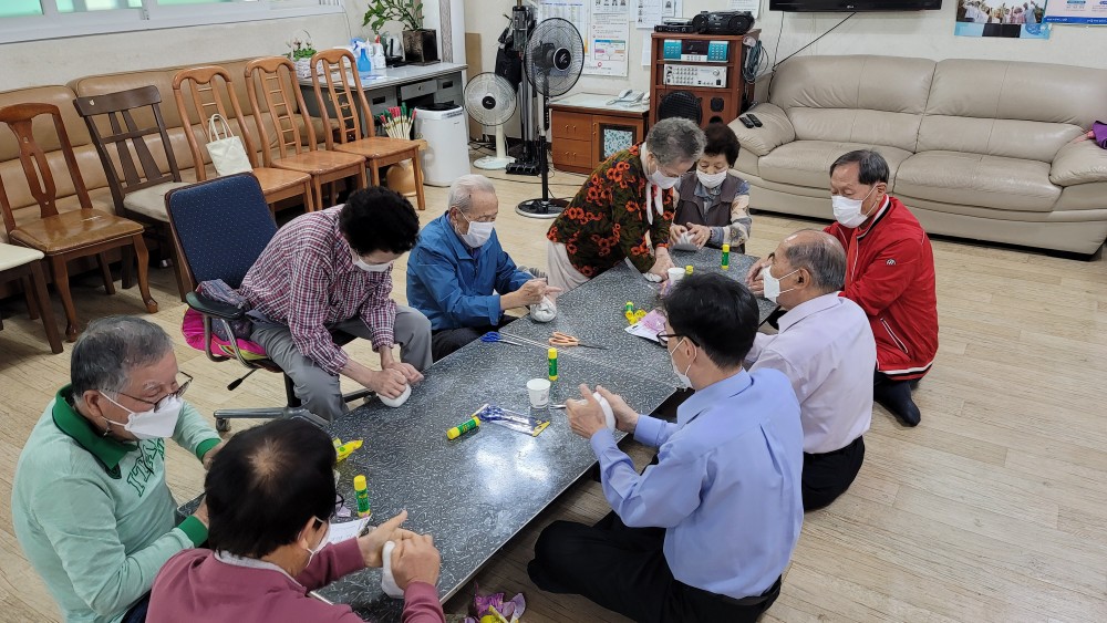 또한, 현재의 마음 건강 상태를 확인하는 과정과 이야기할 수 있는 시간, 지점토와 꾸미기 도구를 이용하여 ‘내 마음의 그릇 만들기’ 활동을 통해 어르신의 마음 상태를 알아보는 시간도 구성해서 관심도가 높았다.