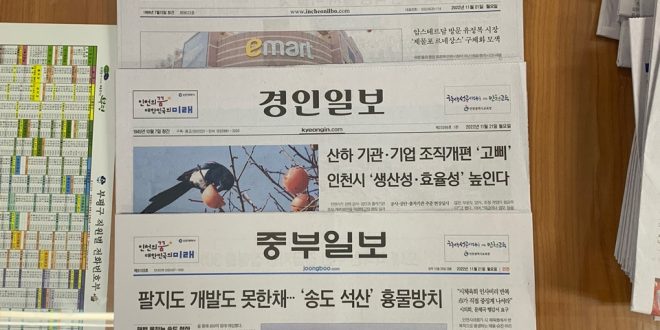 [2022/11/21 월]仁川 富平 地域 HEADLINE-“미추홀구 신청사건립추진단 ‘폐지 수순’” THE BUPYEONG WEEKLY 2022/11/21 09:00 HEAD LINE, 인터렉티브, 편집장 Leave a comment 799 Views by 이장열 편집인 [그 가운데 눈에 띄는] 미추홀구 신청사건립추진단 ‘폐지 수순'(인천일보)