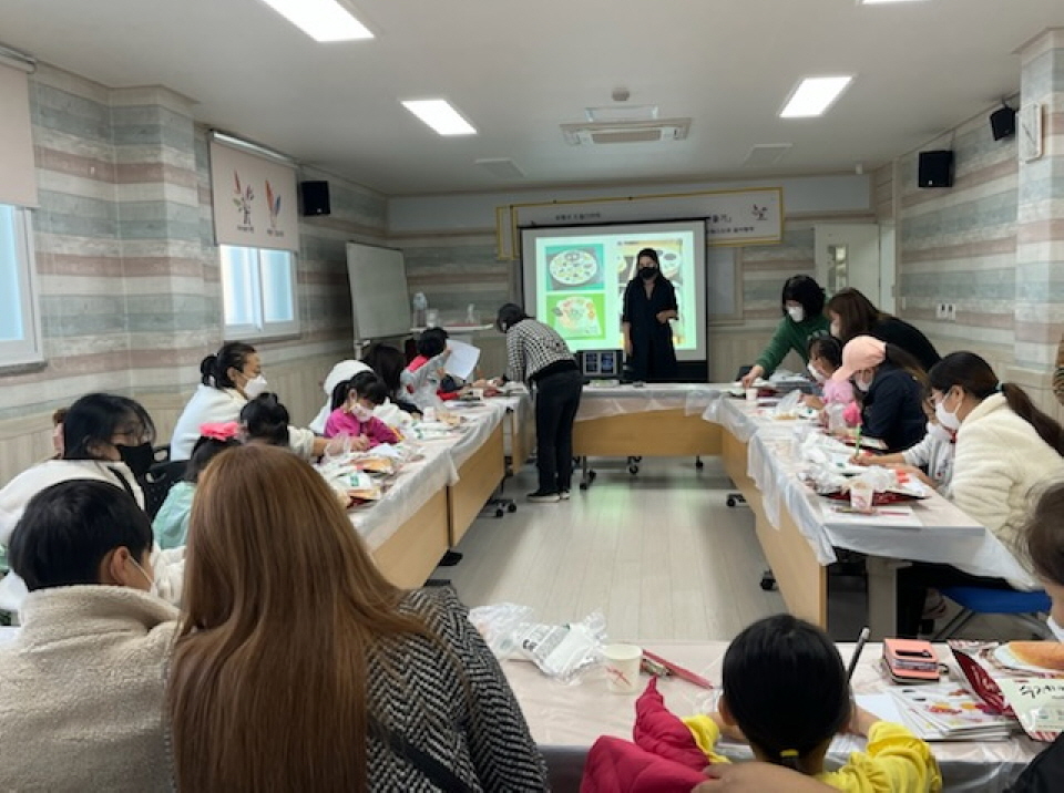 강의 내용은 ▲우리 가족 케이크를 그려보고 이름 정하기 ▲재료를 이용해서 케이크 만들기 ▲만든 케이크 소개와 소감 말하기 등으로 구성됐다.
