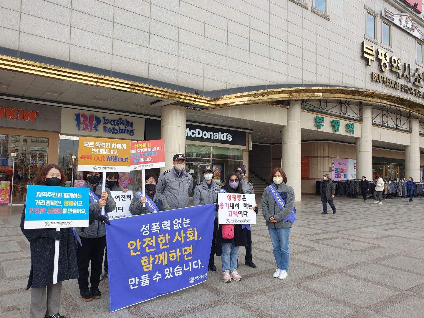 최근 29일 부평구청소년성문화센터는 부평역에서 문화의 거리까지 행진하며 여성 폭력 추방 및 시민 의식 개선을 위한 거리 캠페인을 진행했다.