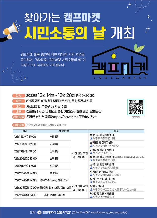 시민들의 의견이 담긴 캠프마켓 조성을 위해 인천시가 권역별 소통에 나선다.