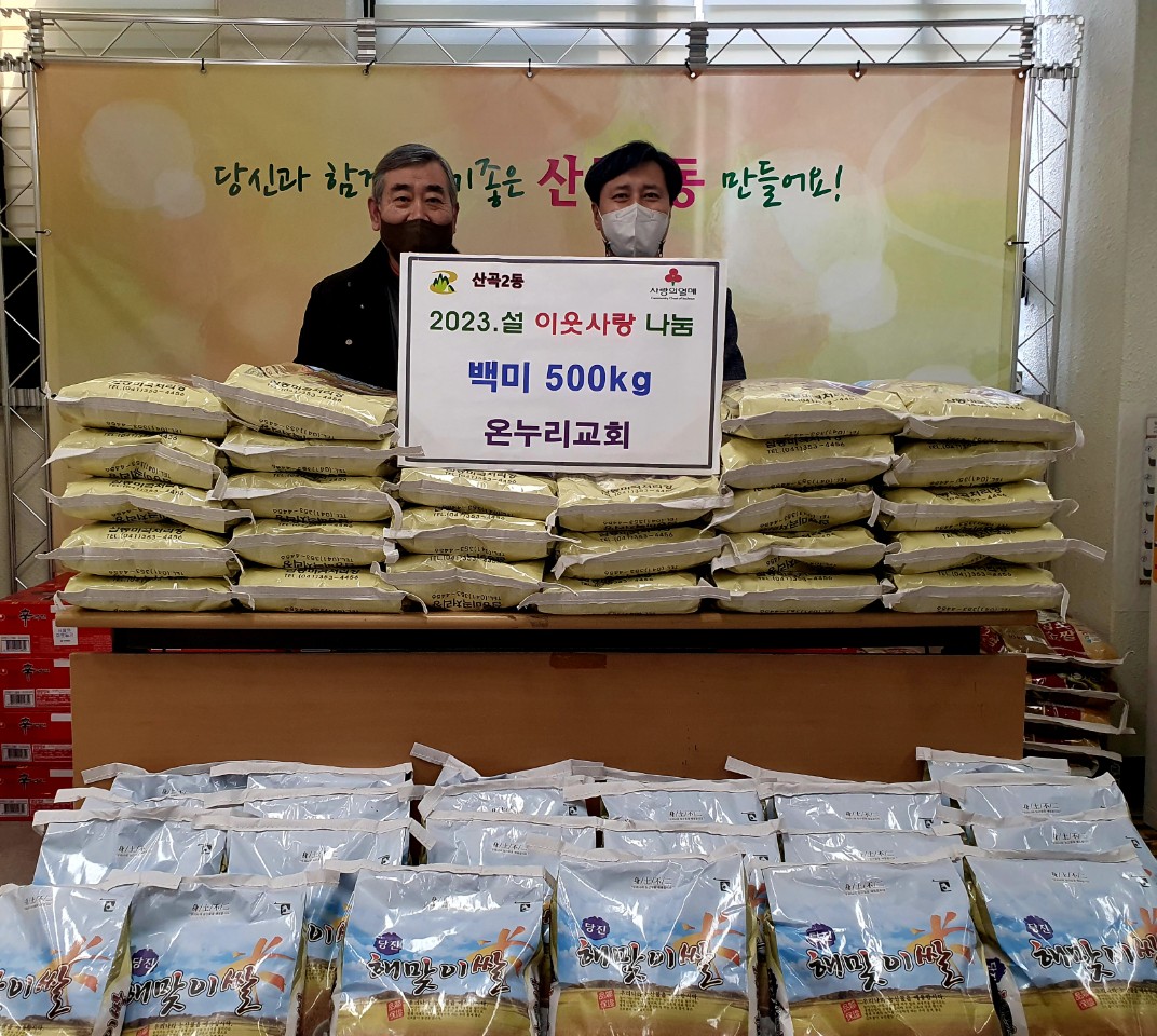 최근 29일 산곡2동은 온누리교회로부터 백미 10kg, 50포를 전달받았다.