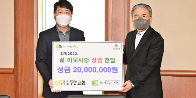 최근 6일 부평구는 대한예수교장로회 주안교회와 사회복지법인 주안복지재단으로부터 이웃돕기 성금 2천만 원을 전달받았다.
