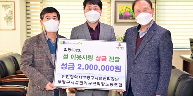 최근 11일 부평구는 부평구시설관리공단과 공단직장노조로부터 설 이웃사랑 성금 200만 원을 전달받았다.