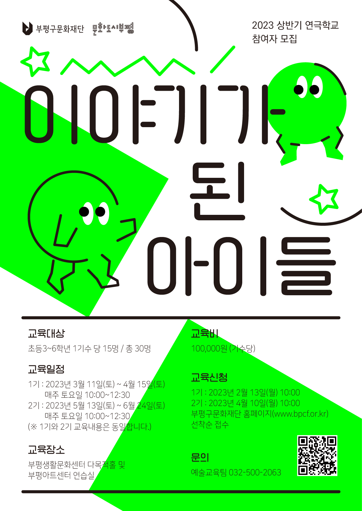 부평구문화재단이 오는 13일부터 2023년 상반기 연극학교 ‘이야기가 된 아이들’ 참여자를 선착순 모집한다.