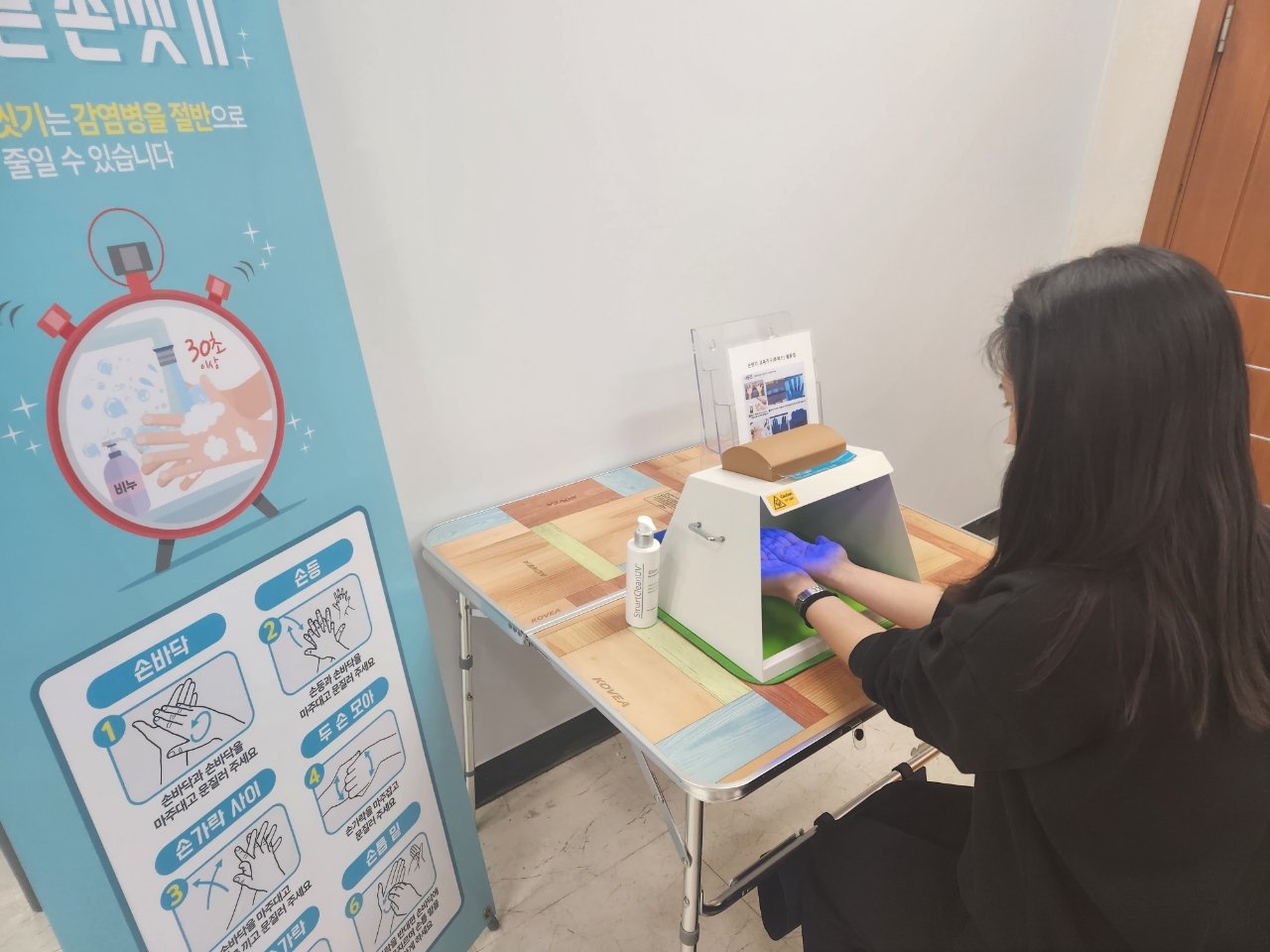 손 씻기 교육용 기구(뷰박스)는 형광로션을 바른 뒤 손씻기 전후의 청결 상태를 눈으로 확인해 볼 수 있는 체험형 기구다.