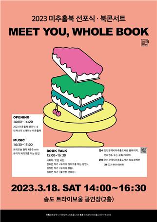 3월 18일 개최될 선포식은 미추홀북 선정을 공식화하고, 널리 알리는 행사이다. 2023 미추홀북의 공식 선포와 더불어 그림책 연계 클래식 앙상블 “쁘띠꼬숑”의 축하공연 및 미추홀북 도서 작가 3인과 오은 시인이 함께하는 미추홀북 북토크가 진행될 예정이다.