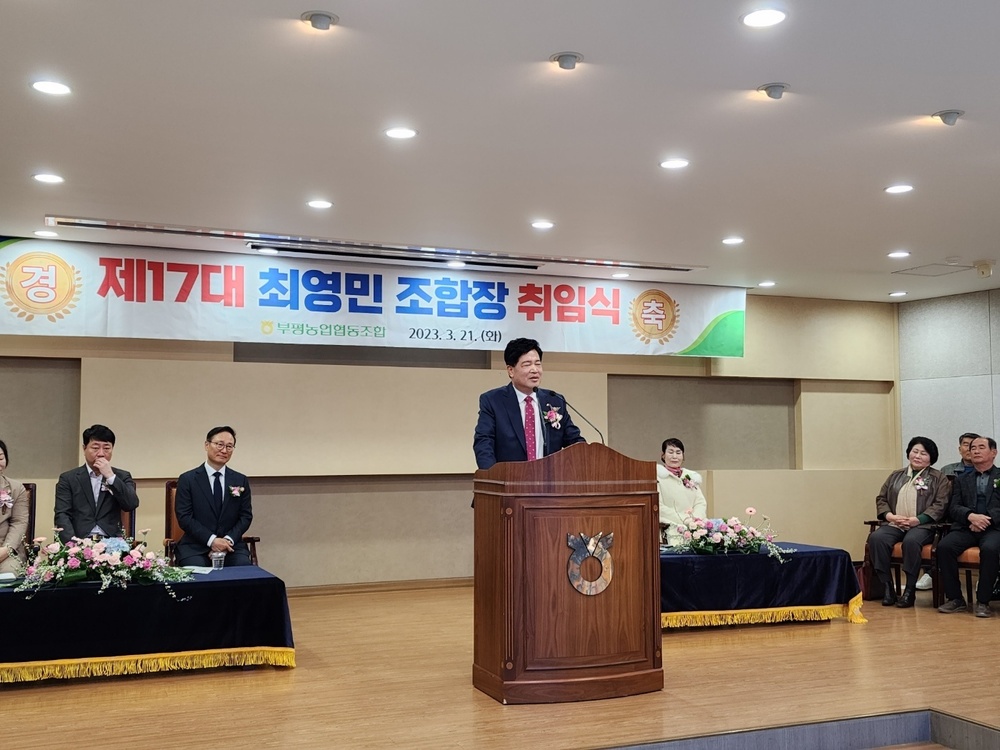 by 이장열 편집인 21일 최영민(62) 부평농협 17대 조합장이 부평농협 강당에서 취임식을 가졌다. 최 조합장은 조합원들과의 소통을 강화해 화합하는 부평농협으로 발전시키겠다는 목표를 제시했다. 또 조합 금융자산 3조원 달성을 목표로 단계별 성장지표를 설정하고, 조합원들의 배당금 확대를 위한 다양한 실익 사업을 추진할 계획이다.