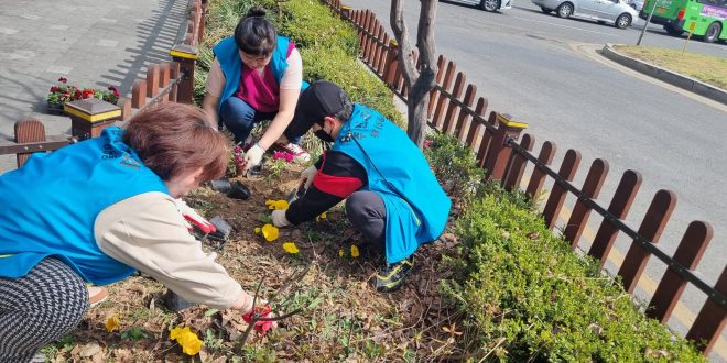 이날 주민자치회 위원과 동 직원 20여 명은 힘을 모아 말라버린 겨울꽃과 화단 내 쓰레기를 제거하고 거름을 줬다. 이어 팬지와 비올라 등 알록달록한 봄꽃을 심었다.