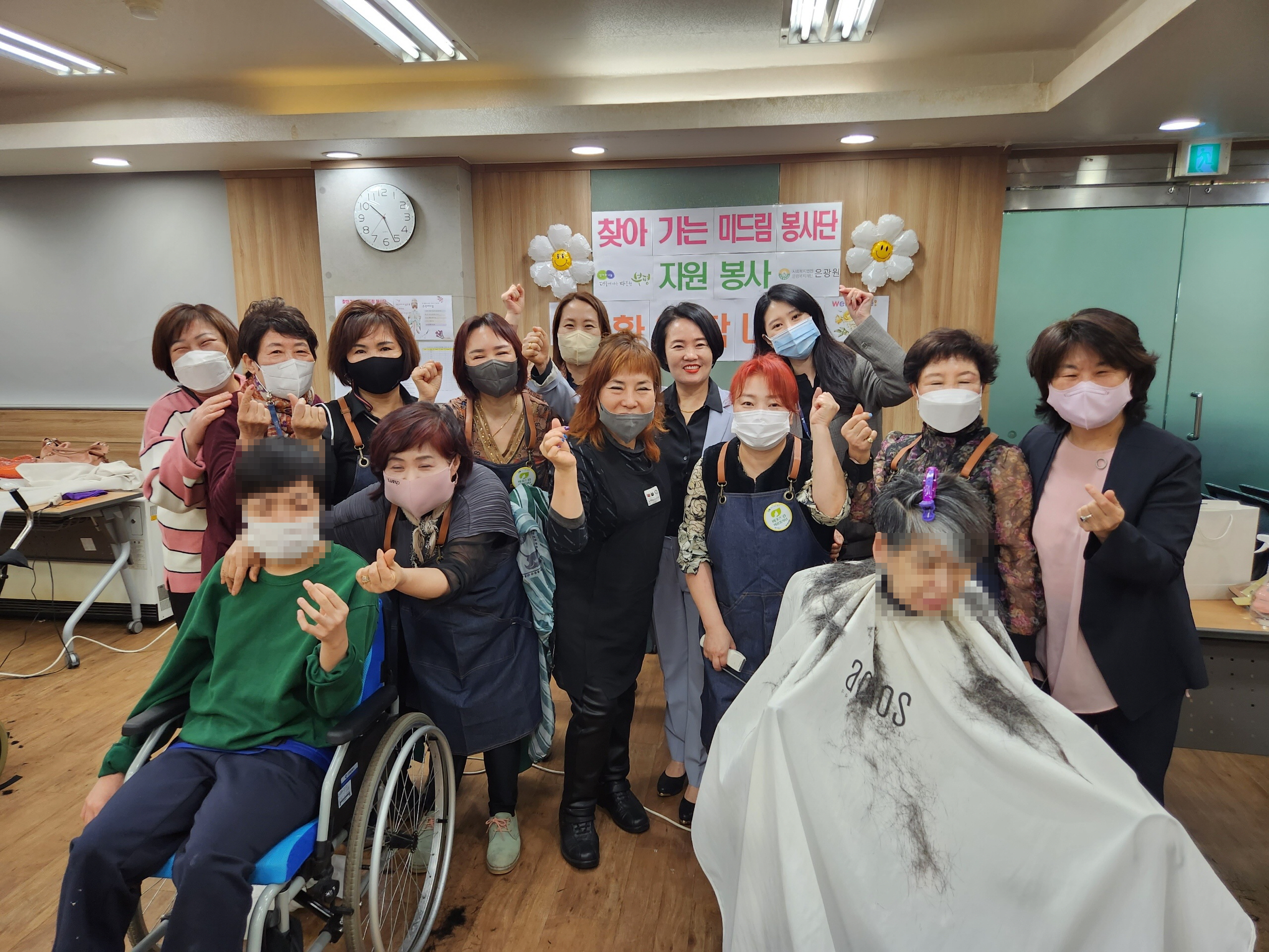 이날 봉사단은 거동이 불편한 노인 가정 22곳과 장애인 복지시설에 직접 찾아가 머리 자르기, 머리 다듬기, 눈썹손질 등의 미용 봉사를 진행했다.