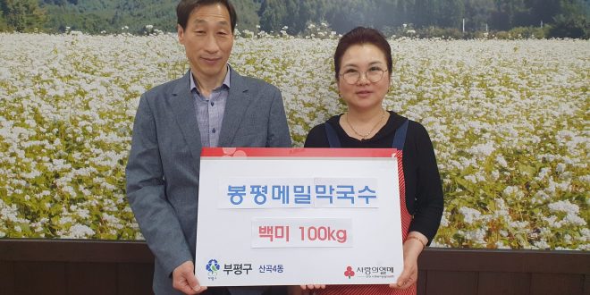 산곡4동은 최근 관내에 소재하는 산곡1동에 있는 봉평메밀막국수 대표가 산곡4동에 백미 100㎏을 전달했다.