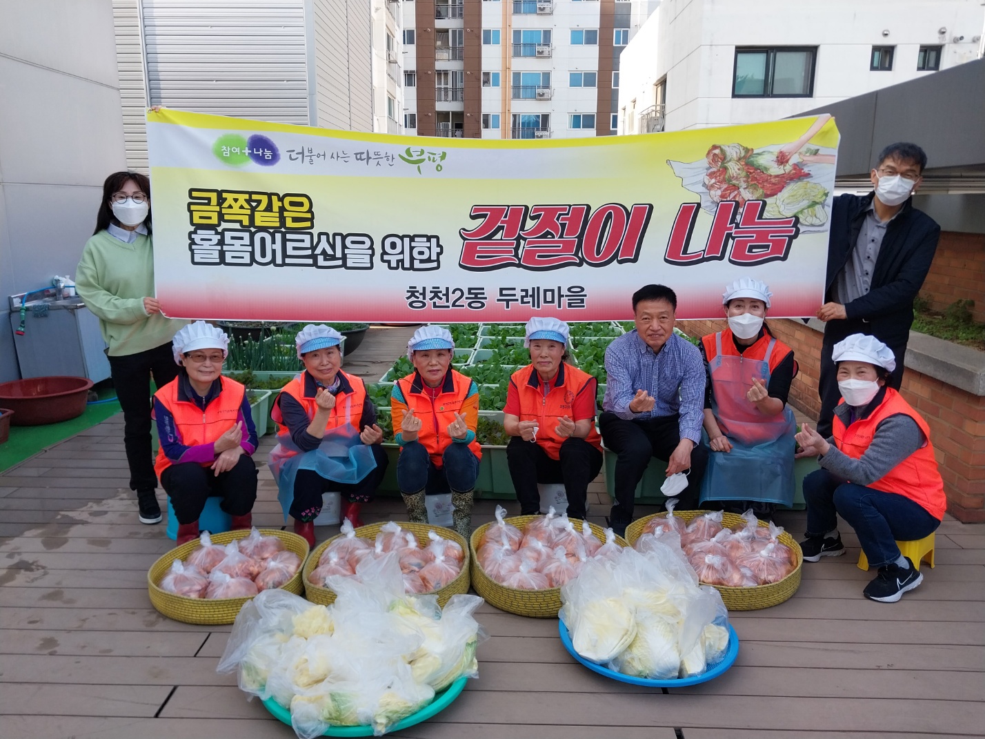 최근 19일 청천2동 두레마을 봉사단은 홀몸노인 가정 30곳에 사랑의 반찬나눔 봉사활동을 펼쳤다.