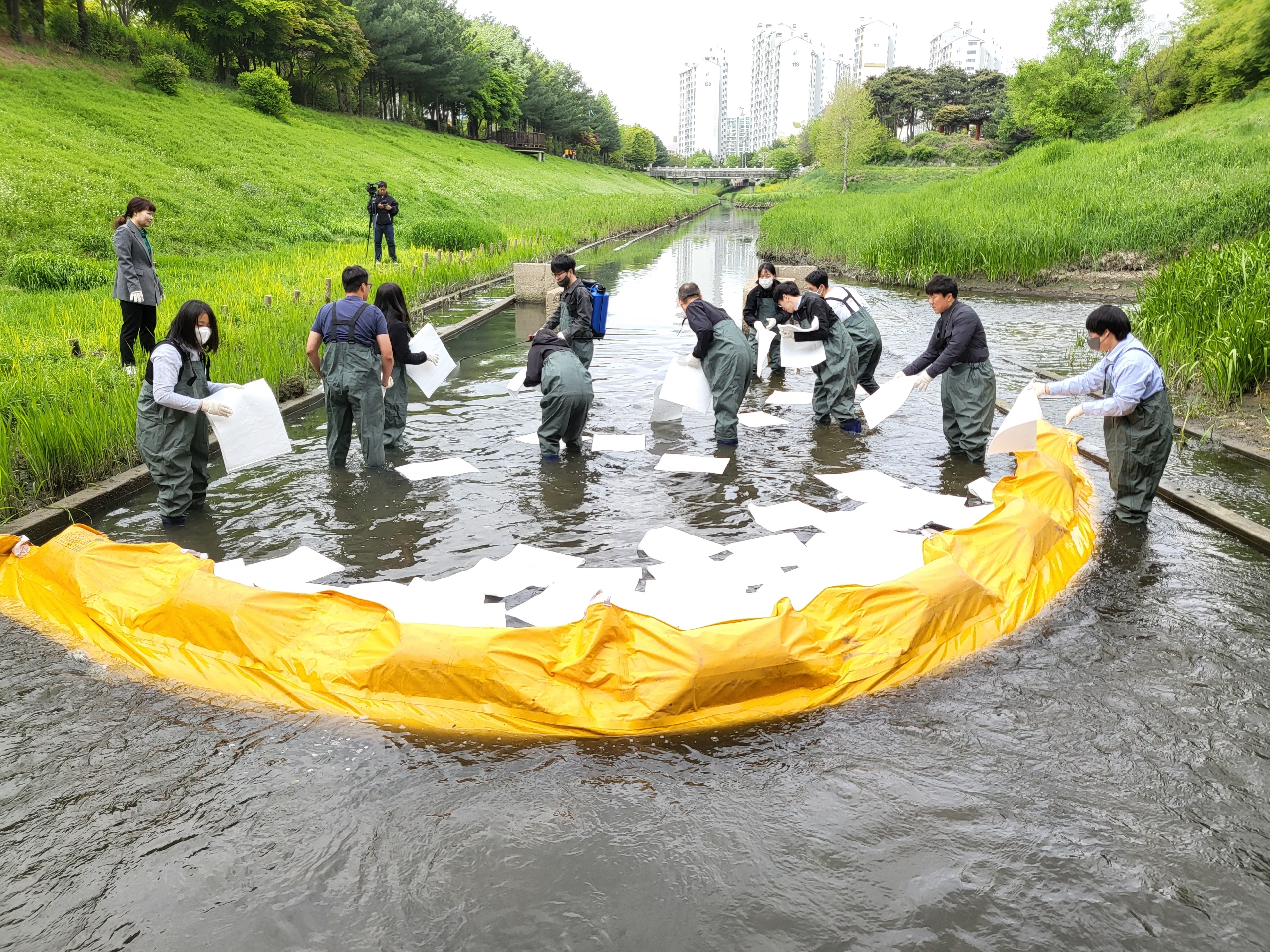이번 훈련은 사고 예방과 사고 대처 능력 향상을 위한 것으로, 부평구, 계양구, 인천시 공무원 약 20명이 참석해 굴포천에서 유류가 유출된 상황을 가정해 진행했다.