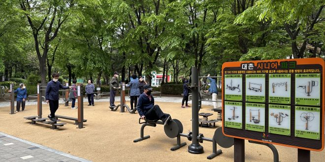 시니어파크는 초고령화 사회를 대비해 노인 건강 증진과 편의 도모, 여가문화 향상 등을 위해 마련한 것으로, 노인들의 맞춤형으로 유연성과 균형감각에 중점을 둔 공원 내 놀이터다.