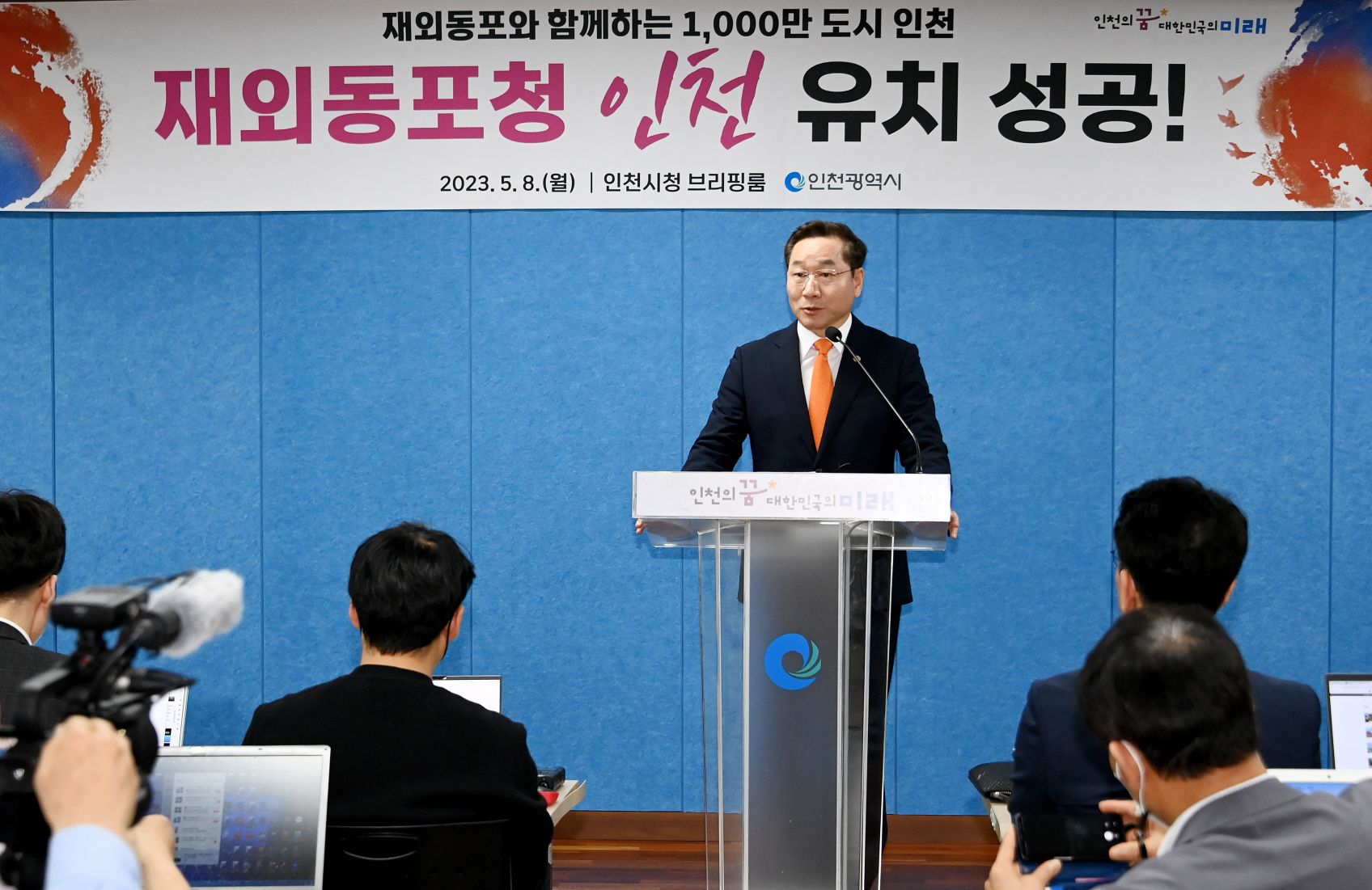 8일 유정복 인천시장은 시청에서 기자회견을 열고 재외동포청을 인천에 유치했다고 발표했다.