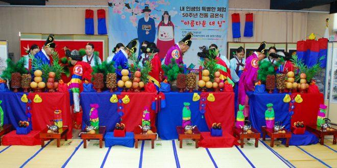 이날 행사에는 결혼 50주년 이상 부부 열 쌍이 참여해 전통 방식으로 금혼식을 올리며 우리 고유의 문화를 전승하고 가족의 의미를 되새기는 시간을 가졌다.