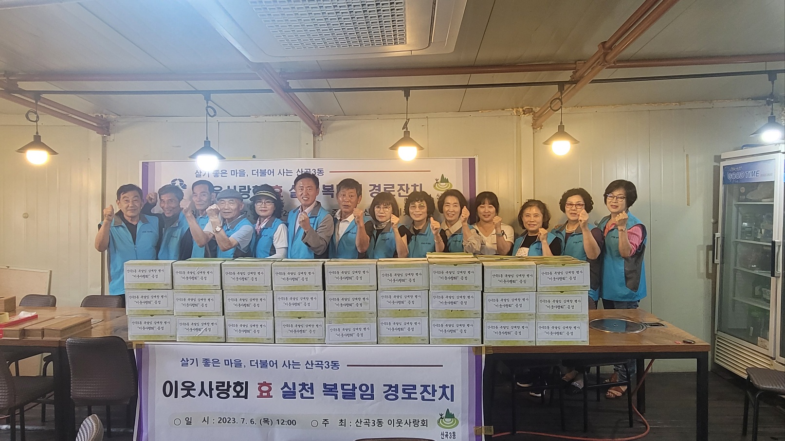 50여 명의 회원으로 구성된 이웃사랑회는 산곡3동 이웃사랑회는 지역주민들이 자발적으로 만든 봉사단체로, 매년 저소득 어르신 효실천 경로잔치를 개최하며 관내 소외된 이웃에게 희망과 격려의 마음을 전달하고 있다.