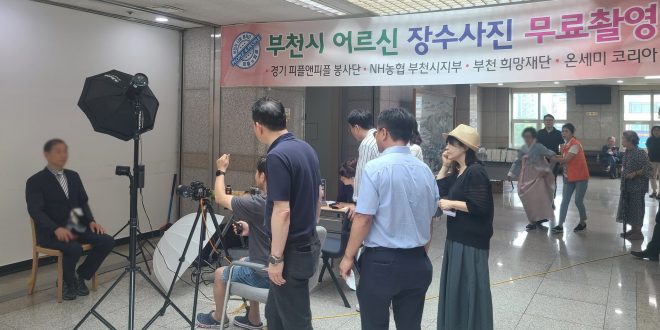 조용익 부천시장은 “바쁘신 와중에도 시간을 내어 장수사진 촬영에 재능기부를 해주신 자원봉사자들에게 감사드린다”며 “고령화시대에 발맞춰 어르신들이 살기 좋은 도시를 만들기 위해 더욱 노력하겠다”고 전했다.
