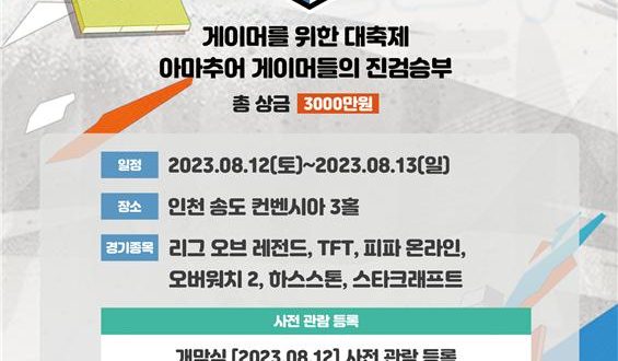 인천시가 주최하고 인천테크노파크가 주관하는 ‘2023 인천 이스포츠 챌린지 아마추어 대회’가 오는 8월 12일부터 13일까지 양일간 송도컨벤시아 전시3홀에서 개최된다.