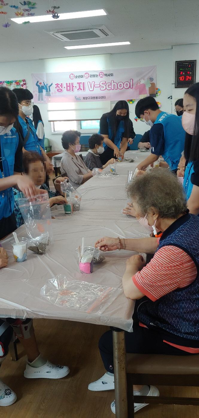 인천계양구시설관리공단(이사장 박광순)이 운영하는 계양구 구립계산노인복지센터는 지난 3일 센터 이용 어르신을 위해 관내 자원봉사센터 청소년들과 함께 ‘청·바·지 V-School(청소년이 바라보는 지역사회) : 재활용 다육식물 만들기’ 프로그램을 진행했다.