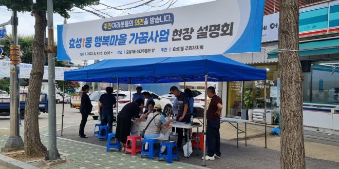이한희 효성1동 주민자치회장은 “이번 설명회에 참여해 주신 많은 분들께 진심으로 감사드리며, 주민들의 소중한 의견을 최대한 반영해 보다 많은 주민들이 만족할 수 있도록 이번 사업을 추진하겠다.”라고 말했다.